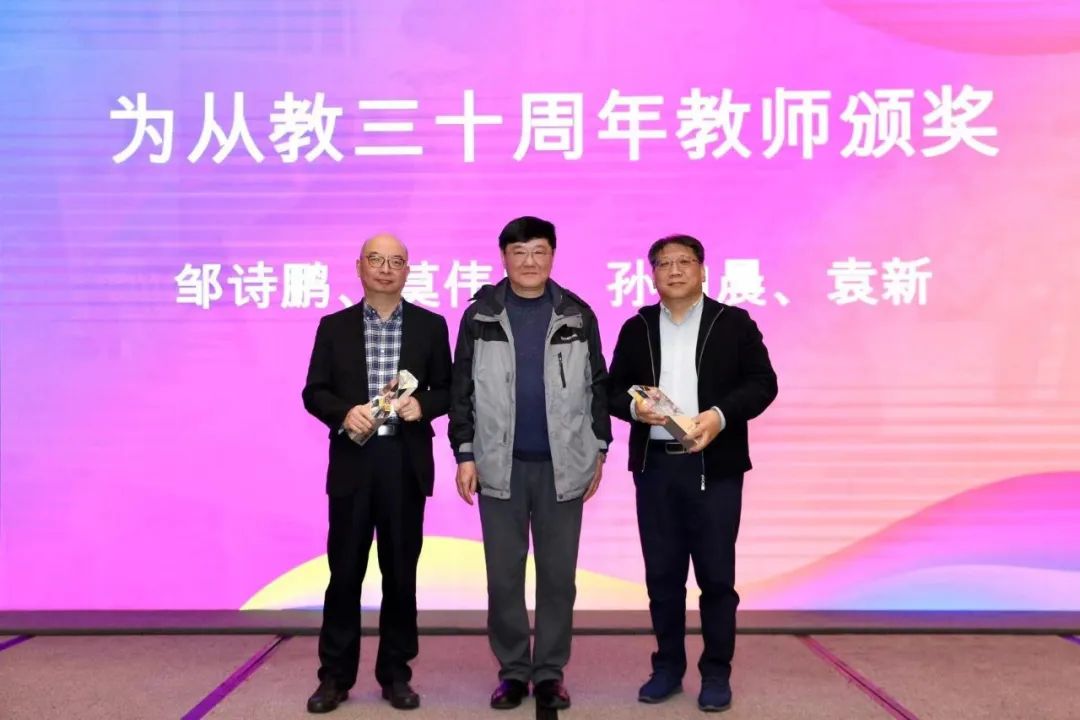 ▲向为学院服务超过二十年的教师代表颁发纪念铭牌