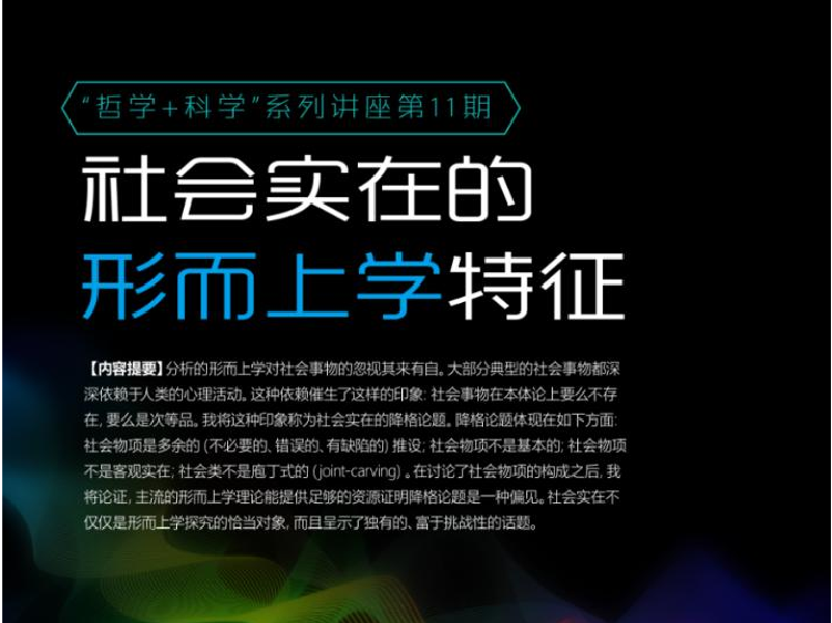 【“哲学+科学”系列讲座】第11期:社会实在的形而上学特征