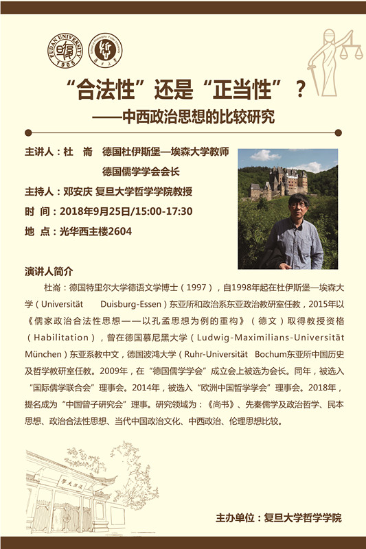 学术讲座:“合法性”还是“正当性”?——中西政治思想的比较研究