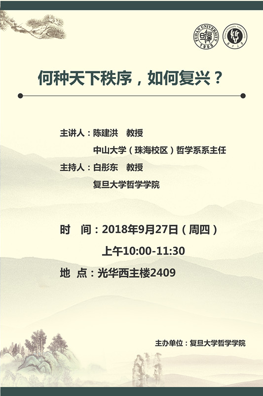 学术讲座:何种天下秩序,如何复兴?