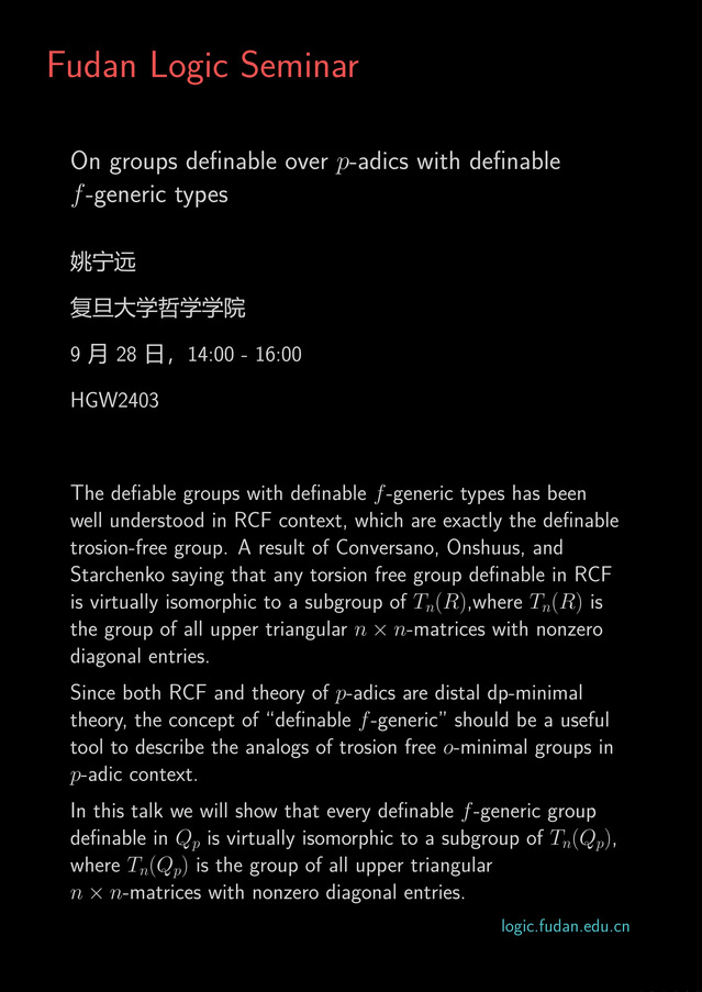 Fudan Logic Seminar: On groups definable over p-adics with d...