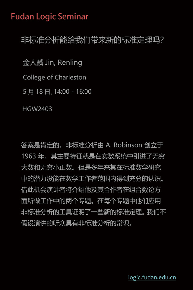 Fudan Logic Seminar:非标准分析能给我们带来新的标准定理吗?