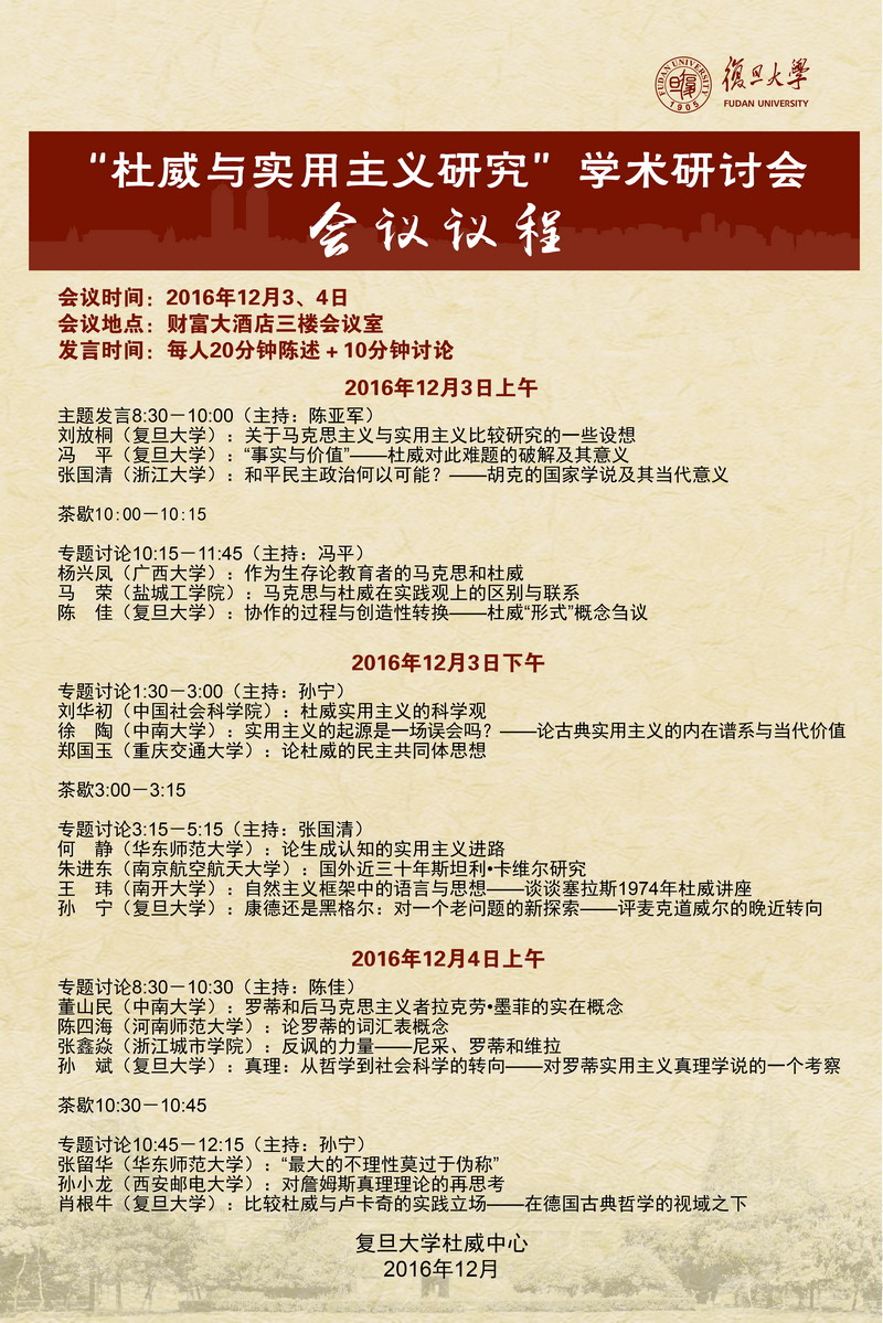 “杜威与实用主义研究”学术研讨会会议议程
